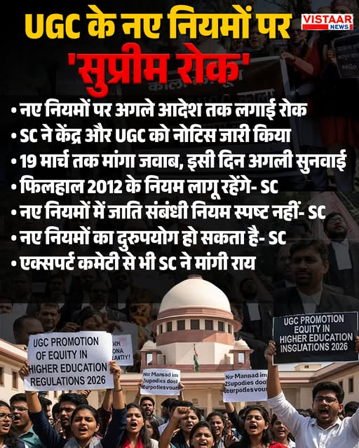 Supreme Court stays the University Grants Commission (Promotion of Equity in Higher Education Institutions) Regulations, notified on January 23, 2026 which was challenged by various petitioners as being arbitrary, exclusionary, discriminatory and in violation of the Constitution… pic.twitter.com/KUuXgEMntL