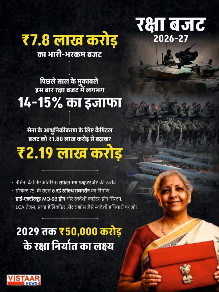 Defence Budget: देश की वित्त मंत्री निर्मला सीतारमण ने रविवार को 2026-27 के लिए यूनियन बजट संसद में पेश किया. इस बजट में भारतीय सेना को मजबूत करने पर फोकस किया गया है. इस बजट में रक्षा मंत्रालय को 7.8 लाख करोड़ रुपये की धनराशि आवंटित की गई है. इस बार रक्षा बजट में करीब 15 प्रतिशत की बढ़ोत्तरी की गई है.