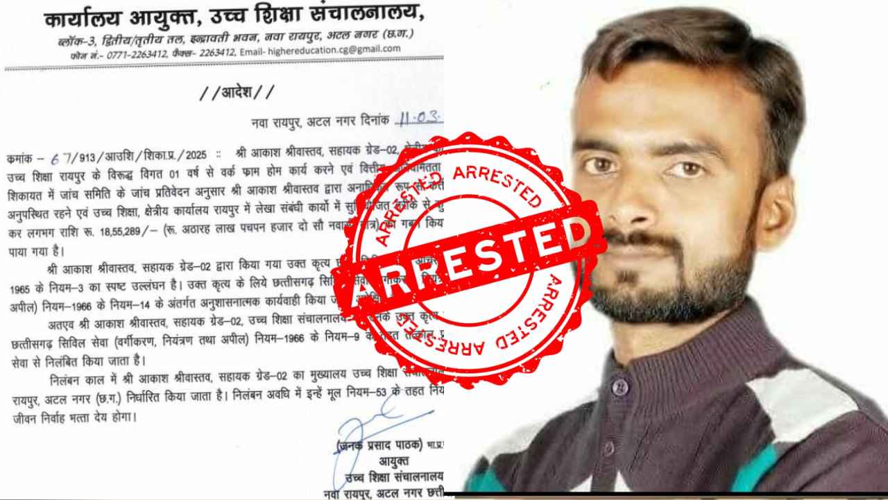 उच्च शिक्षा विभाग में पैसों के गबन के मामले में सरकारी बाबू आकाश श्रीवास्तव के खिलाफ सरस्वती नगर थाने में FIR दर्ज कर से गिरफ्तार कर लिया गया है. बाबू ने 6 अन्य सहकर्मरियों के खाते में भी भ्रष्टाचार के पैसे को अवैध तरीके से जमा कराए थे. इन 6 कर्मचारियों का नाम: कु. वैदेश्वरी निर्मलकर और कोमल कुमार साहू, खीलावन जोशी, अजय कुमार टण्डन, भूपेन्द्र कुमार वर्मा और देवकुमारी वर्मा है.