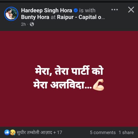 टिकट कटने पर हरदीप होरा ने छोड़ी पार्टी