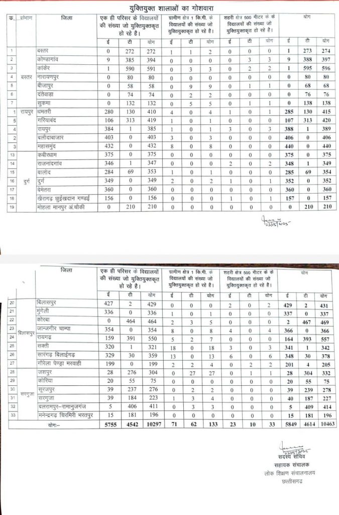 जारी आदेश के मुताबिक़ लोक शिक्षण संचालनालय द्वारा प्रस्तुत प्रस्ताव को मान्य करते हुए ई-संवर्ग के 5849 एवं टी-संवर्ग के 4614 इस प्रकार कुल 10463 शालाओं के युक्तियुक्तकरण करने का निर्णय लिया गया है.