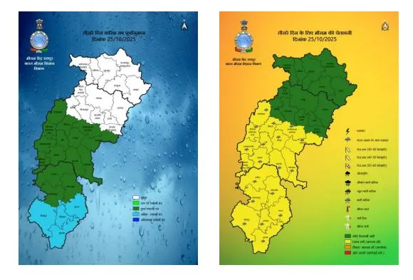 28 अक्टूबर तक बस्तर संभाग के जिलों में हल्की से मध्यम बारिश हो सकती है. सुकमा, दंतेवाड़ा और नारायणपुर जैसे इलाकों में भी मौसम एकदम बदल सकता है, इसलिए लोग बाहर जाने से पहले मौसम का हाल जान लें.