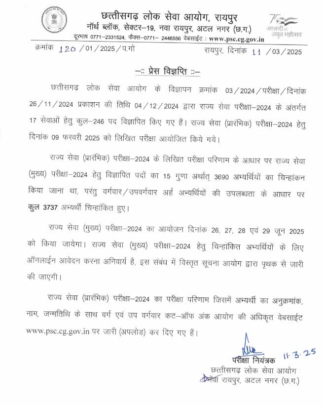 CGPSC प्रीलिम्स का रिजल्ट जारी, 3 हजार से ज्यादा अभ्यर्थी हुए सफल, यहां चेक करें रिजल्ट