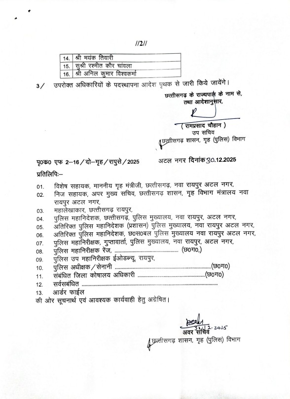 CG Promotion: नए साल से पहले राज्य पुलिस सेवा के 16 अफसरों का हुआ प्रमोशन, यहां देखें लिस्ट