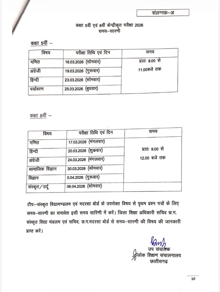 Chhattisgarh में इस दिन से शुरू होगी 5वीं- 8वीं की बोर्ड परीक्षा, टाइम टेबल जारी, यहां देखें पूरा शेड्यूल