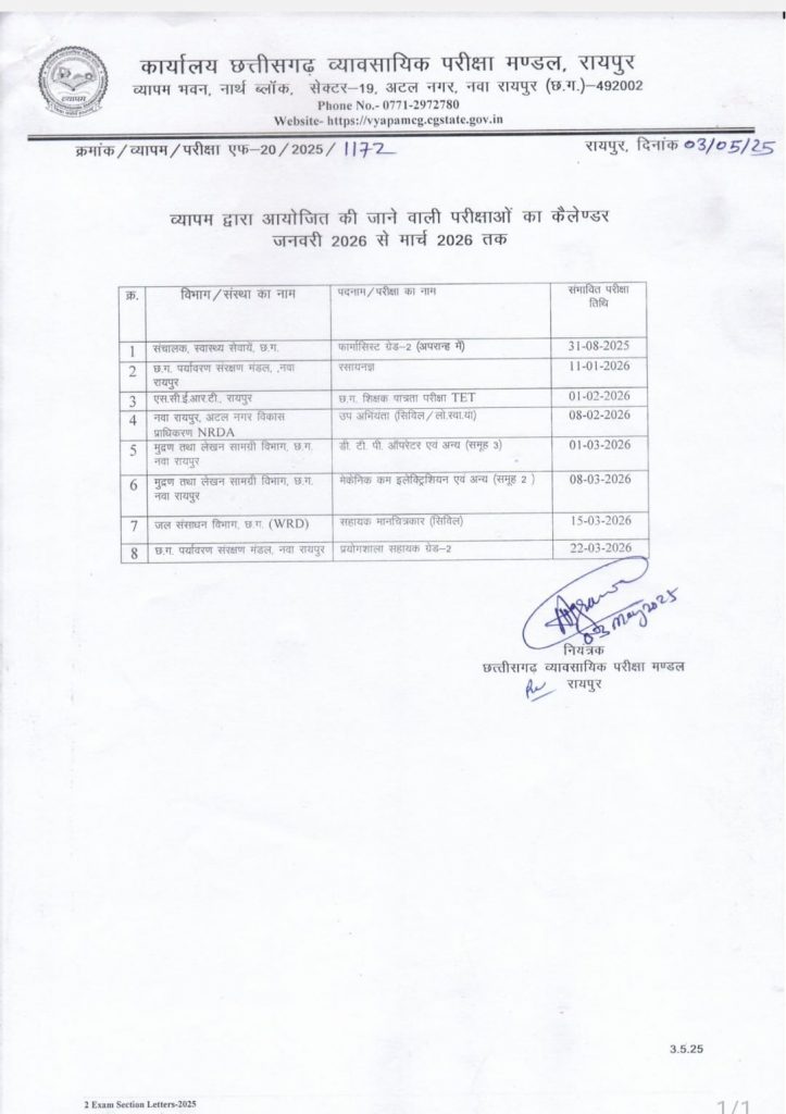 Chhattisgarh के युवाओं के लिए खुशखबरी! व्यापम ने इन परीक्षाओं के लिए जारी किया कैलेंडर, देखें शेड्यूल