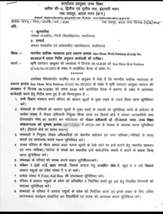 छत्तीसगढ़ के कॉलेज-यूनिवर्सिटी में आवारा कुत्तों की निगरानी करेंगे प्रोफेसर