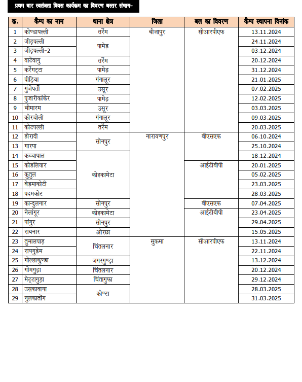 बस्तर संभाग के सुकमा, बीजापुर और नारायणपुर जिले के 29 ऐसे गांव हैं, जहां नक्सलवाद चरम पर था. यहां लोकतंत्र नहीं बल्कि नक्सलियों का गनतंत्र हावी था. सालभर के अंदर सुरक्षा बलों का कैंप खोला गया. फोर्स अंदरूनी इलाके में घुसी. नक्सलियों का एनकाउंटर कर उन्हें खदेड़ा गया. कैंप स्थापित होने के बाद आज पहली बार आजादी का जश्न मनाया गया.