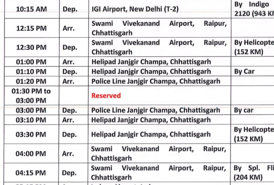 केंद्रीय मंत्री जेपी नड्डा सुबह 10 बजकर 15 मिनट में दिल्ली से रवाना होंगे. दोपहर सवा 12 बजे रायपुर पहुंचेंगे. वहीं दोपहर करीब 1 बजे केंद्रीय मंत्री जेपी नड्डा जांजगीर पहुंचेंगे. दोपहर डेढ़ बजे से 3 बजे तक जांजगीर में कार्यक्रम में शामिल होंगे. शाम करीब 4 बजे जांजगीर से वापस रायपुर लौटेंगे केंद्रीय मंत्री जेपी नड्डा. फिर यहां से दिल्ली के लिए वापस रवाना होंगे.