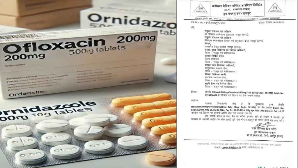 राजधानी रायपुर और बलौदाबाजार जिले के सभी सरकारी अस्पतालों, सामुदायिक स्वास्थ्य केंद्रों और हमर क्लीनिकों में 31 मई 2026 को एक्सपायरी होने वाली पेट की दवा ओफलॉक्सासिन प्लस ऑर्निडाजोल, ओफलॉक्ससीन 200 एमजी ऑनीरडाजोल 500 एमजी टेबलेट के उपयोग पर तत्काल ब्रेक लगाया गया है.