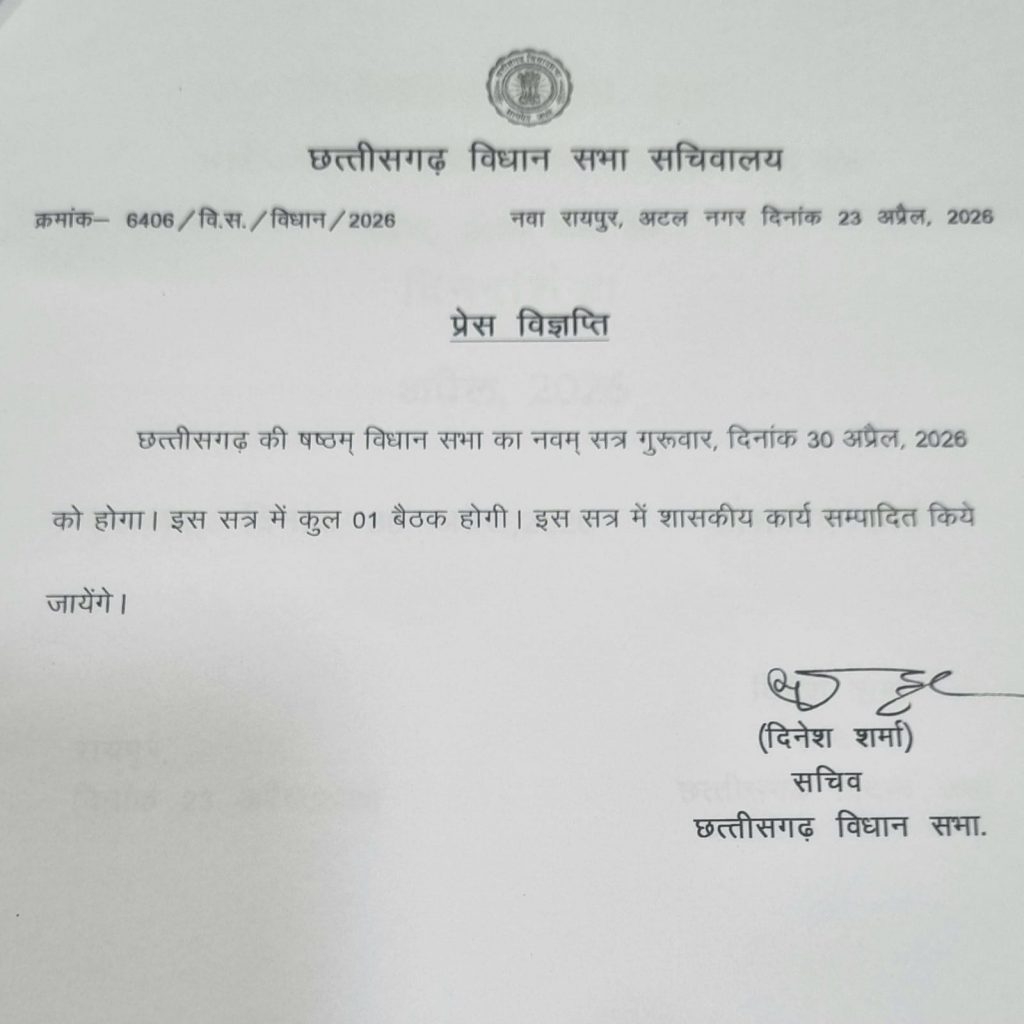 30 अप्रैल को छत्तीसगढ़ विधानसभा का विशेष सत्र