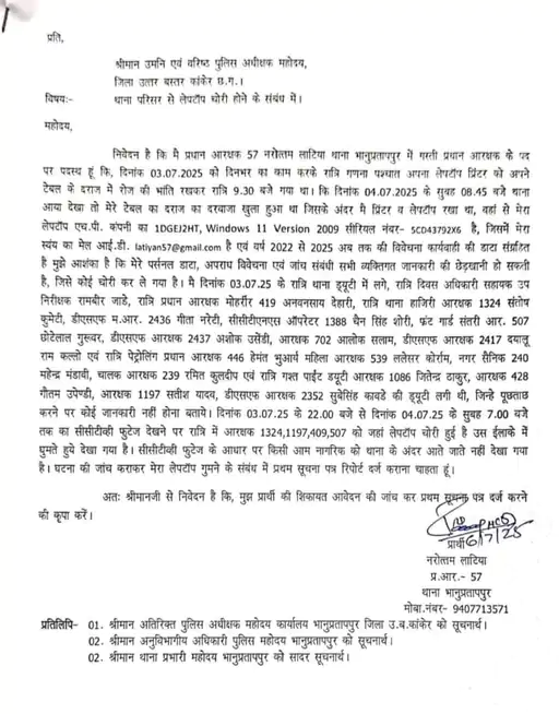 लैपटॉप में साल 2022 से 2025 तक के अपराध विवेचना का डेटा और निजी जानकारी थी. इस चोरी का खुलासा तब हुआ जब शिकायत पत्र सोशल मीडिया पर वायरल होने लगा.