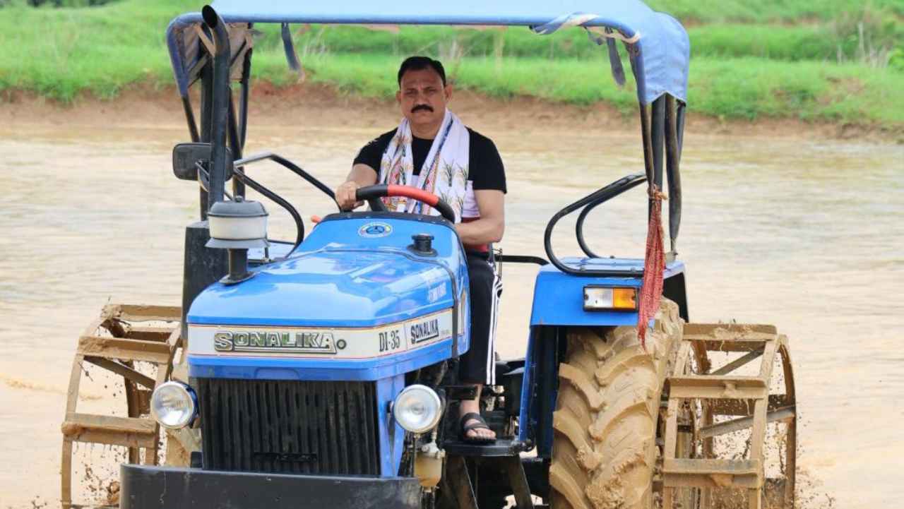 मंत्री श्याम बिहारी जायसवाल ने खेत में चलाया ट्रैक्टर