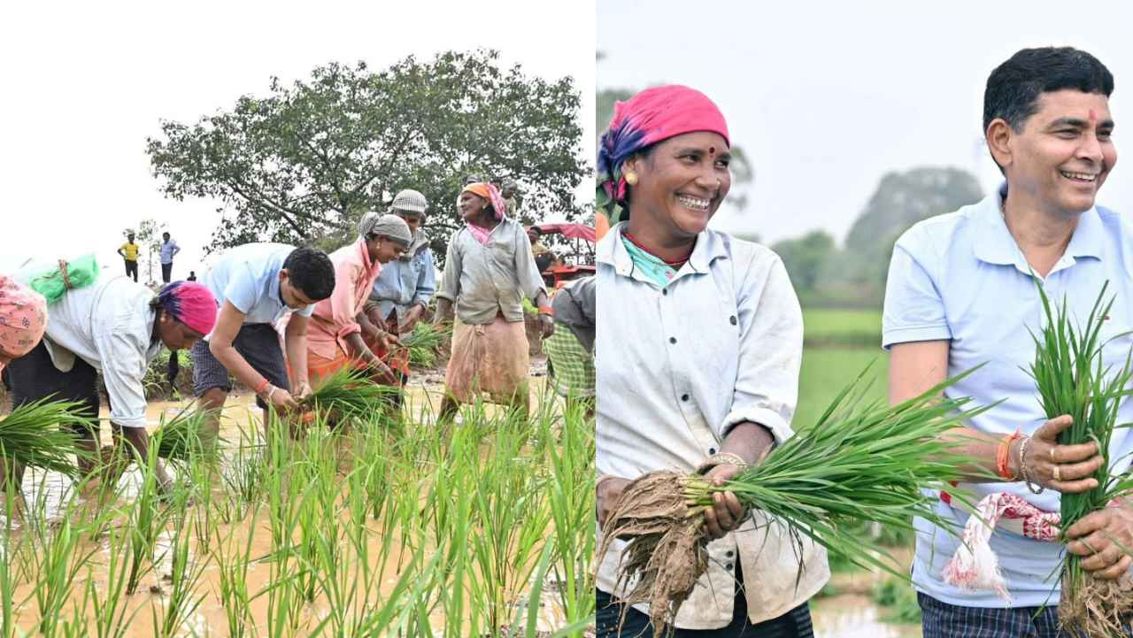 मंत्री टंकराम वर्मा ने खेतों में की धान की रोपाई