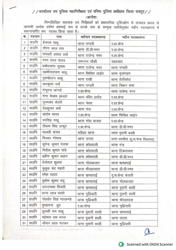 रायपुर में 77 पुलिस कर्मियों का हुआ ट्रांसफर