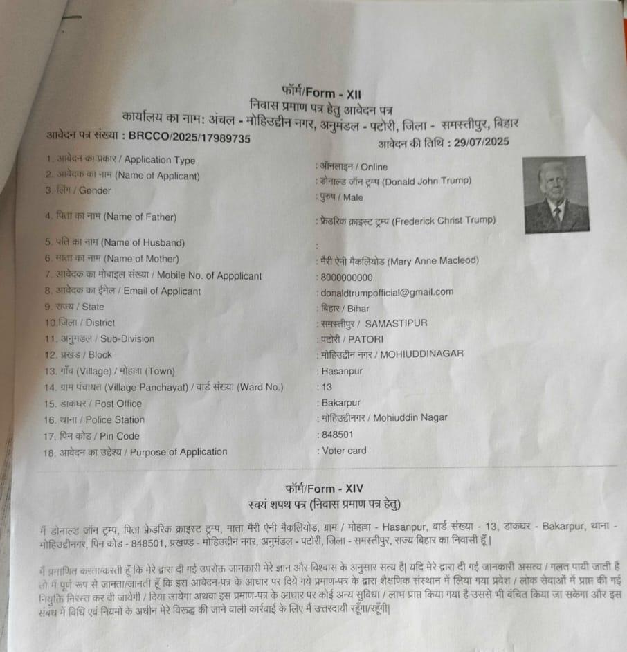 बिहार के निवासी बनने के लिए ‘डोनाल्ड ट्रंप’ ने किया आवेदन, फिर क्या? दर्ज हो गई FIR
