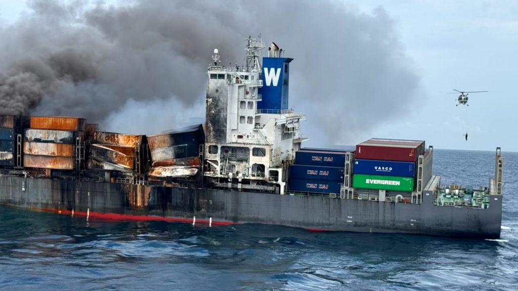 कोस्ट गार्ड की बड़ी कामयाबी: MV Wan Hai 503 की आग पर पाया काबू, 47 नॉटिकल मील दूर ले जाया गया जहाज