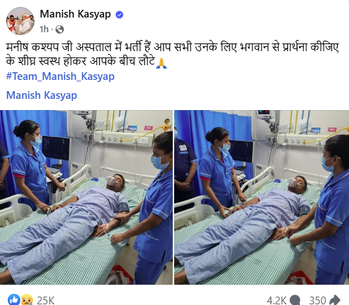 इस घटना के बाद मनीष कश्यप ने अपने फेसबुक पेज पर अस्पताल में भर्ती होने की तस्वीर साझा की है. जिसमें वो बेड पर लेटे हैं, दो नर्स उनका चेकअप करते दिख रही हैं.