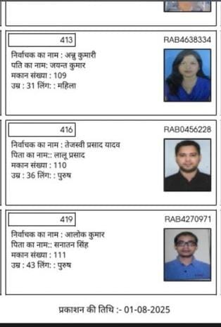 बिहार के नेता प्रतिपक्ष और राजद नेता तेजस्वी यादव ने शनिवार, 2 अगस्त को पटना में एक प्रेस कॉन्फ्रेंस में सनसनीखेज खुलासा किया कि उनका नाम नए ड्राफ्ट वोटर लिस्ट से हटा दिया गया है. उन्होंने पत्रकारों के सामने अपने EPIC नंबर के जरिए ऑनलाइन चेक किया, जिसमें ‘नो रिकॉर्ड फाउंड’ का मैसेज आया. तेजस्वी ने सवाल उठाया- ‘जब मेरा नाम वोटर लिस्ट में नहीं है, तो मैं चुनाव कैसे लड़ूंगा?’
