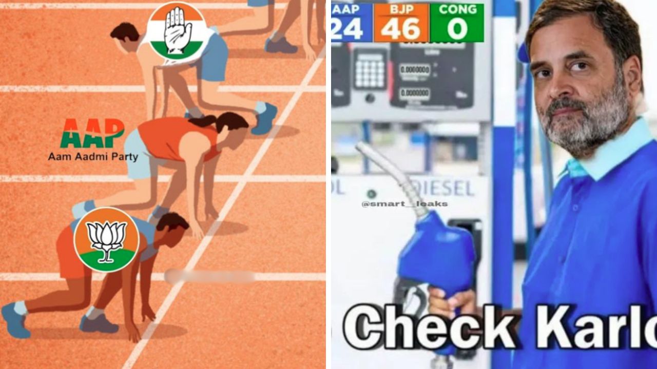 Delhi Election Results: दिल्ली विधानसभा चुनाव 2025 में बीजेपी सरकार बनाती नजर आ रही है. 27 साल बाद बीजेपी दिल्ली की सत्ता में वापसी करते नजर आ रही है. सुबह से जब रुझान आने शुरु हुए, तब से ही सोशल मीडिया पर मीम्स की बारिश हो गई. इन मीम्स में लोगों ने बीजेपी की वापसी और आम आदमी पार्टी की हार का जम कर मजाक उड़ाया. इन मीम्स में लोगों ने कांग्रेस का भी जमकर नजाक उड़ाया.