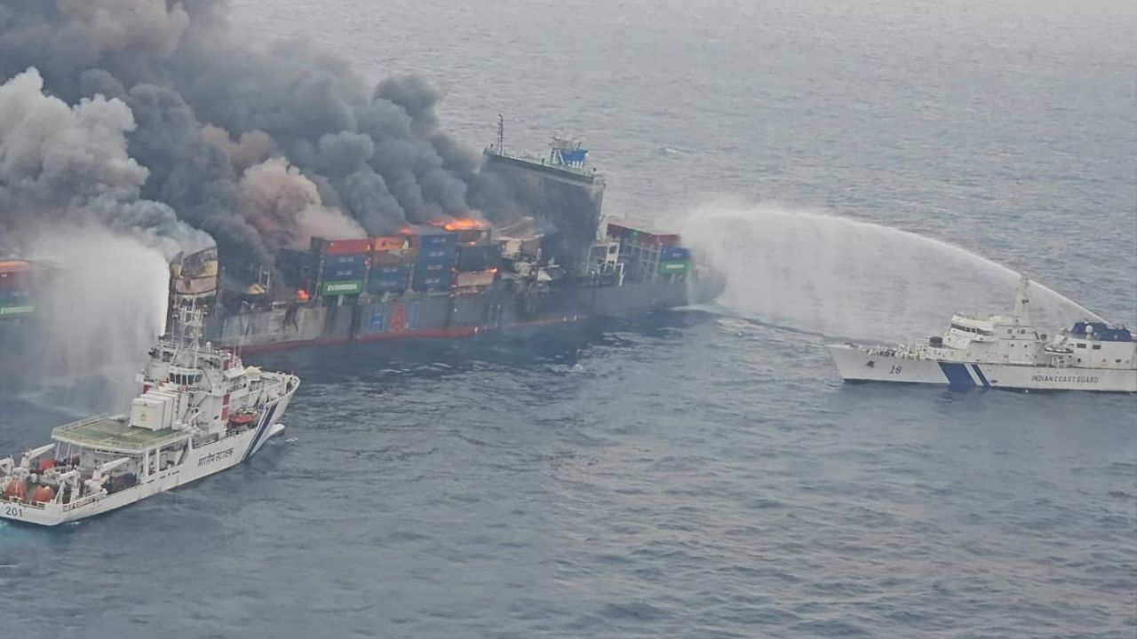 कार्गो शिप में अचानक से आग लगने के बाद कई धमाके हुए. जिसकी गूंज काफी दूर तक सुनाई दी थी. आसपास का आसमान धुआं-धुआं हो गया. फिलहाल ICG का रेस्क्यू ऑपरेशन जारी है. लापता लोगों की तलाश की जा रही है. कंटेनरों के पानी में गिरने के कारण भारतीय तट रक्षक कल से ही अलर्ट हैं.कंटेनरों में खतरनाक केमिकल हैं. जिनके पानी में फैलने से जानलेवा हो सकता है.