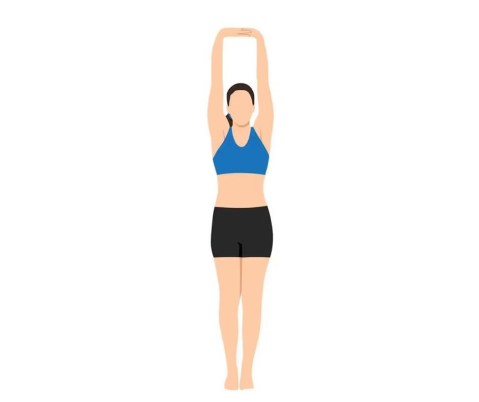 कैसे करें: सीधे खड़े हों, पैरों को जोड़ें और हाथों को शरीर के साथ रखें. फिर गहरी सांस लें, हाथों को ऊपर उठाएं और हथेलियों को जोड़ें. इसके बाद शरीर को ऊपर की ओर खींचें और 20-30 सेकंड तक रुकें.