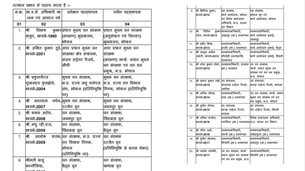 MP IFS Transfer: वन विभाग में बड़ा प्रशासनिक फेरबदल! 28 IFS अफसरों के तबादले