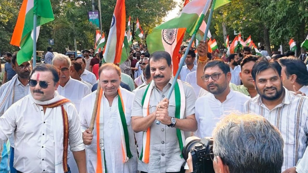 तिरंगा यात्रा में पीसीसी चीफ जीतू पटवारी,मध्य प्रदेश विधानसभा नेता प्रतिपक्ष उमंग सिंघार, पूर्व मुख्यमंत्री और राज्यसभा सांसद दिग्विजय सिंह, संगठन प्रभारी महासचिव संजय कामले, भोपाल शहर अध्यक्ष प्रवीण सक्सेना, ग्रामीण जिला अध्यक्ष अनोखी पटेल समेत कांग्रेस के कई दिग्गज नेता और कार्यकर्ता शामिल हुए.