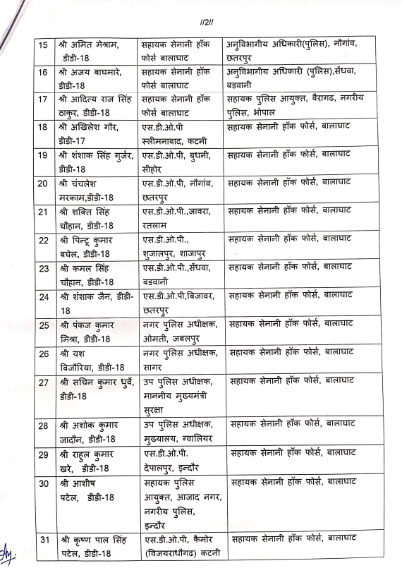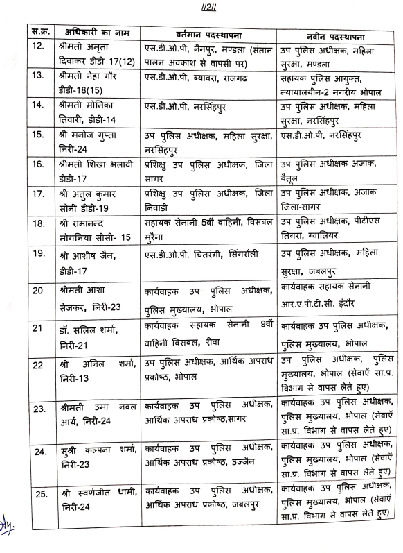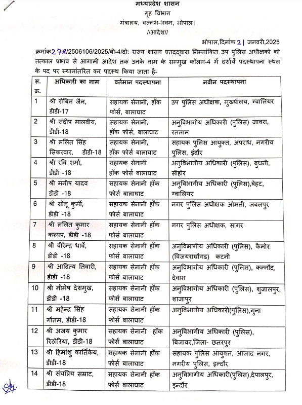 MP News: पुलिस विभाग में बड़ा फेरबदल, 69 DSP, CSP और SDOP के तबादले, देर रात जारी हुई लिस्ट