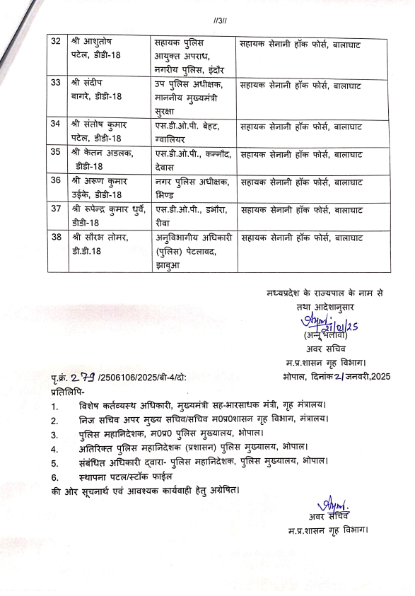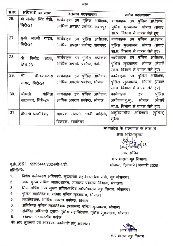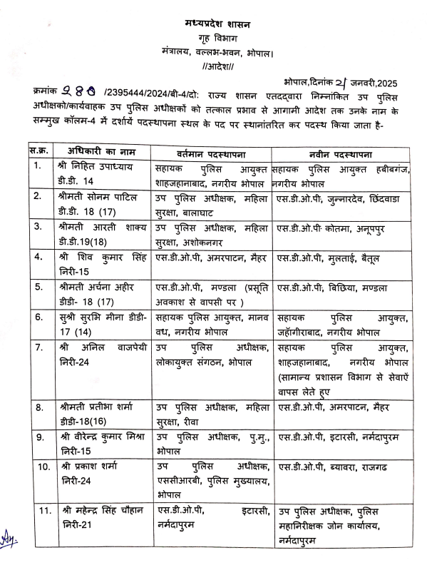 Bhopal News: 69 DSP, CSP and SDOP transferred