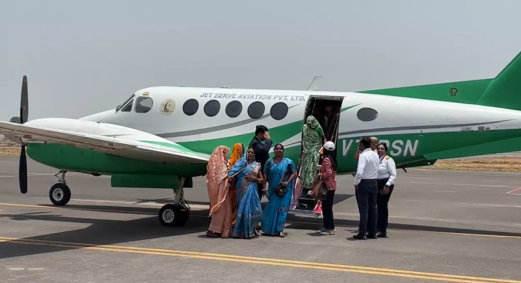 सतना एयरपोर्ट की सौगात के बाद महिला पायलट ने भरी पहली उड़ान, आदिवासी महिलाओं ने मनाया जश्न