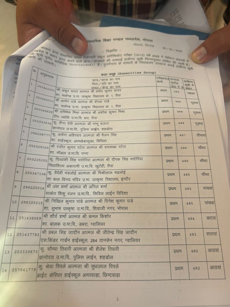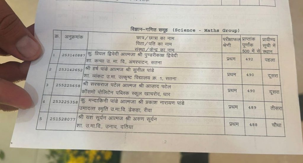 यह भी पढ़ें: MP Board Result घोषित, 10वीं में प्रज्ञा जायसवाल ने मारी बाजी, 12वीं में प्रियल द्विवेदी ने किया टॉप
