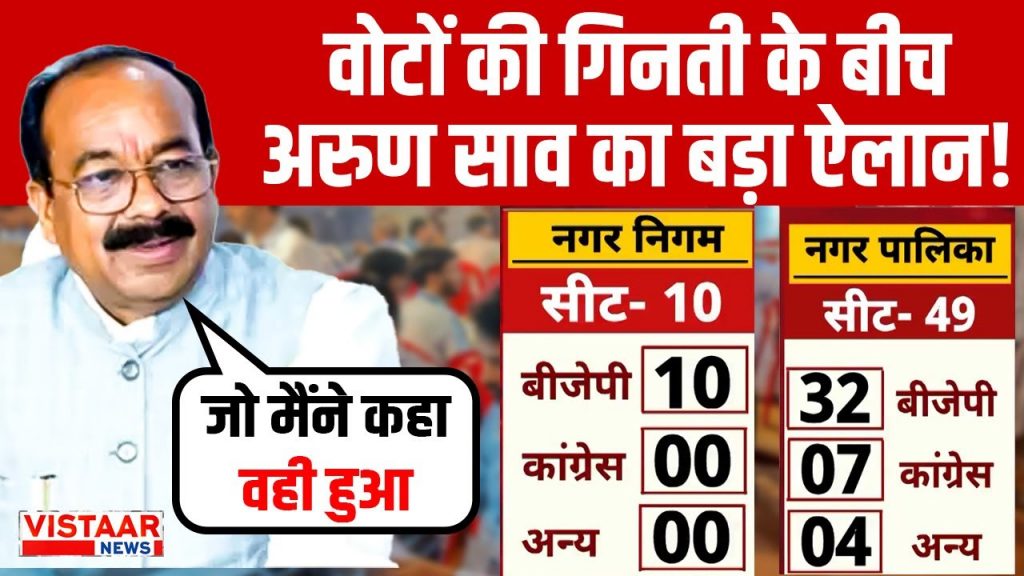 Nikay Chunav Result 2025: वोटों की गिनती के बीच Deputy CM Arun Sao का बड़ा ऐलान! Vistaar News Desk 10 months ago