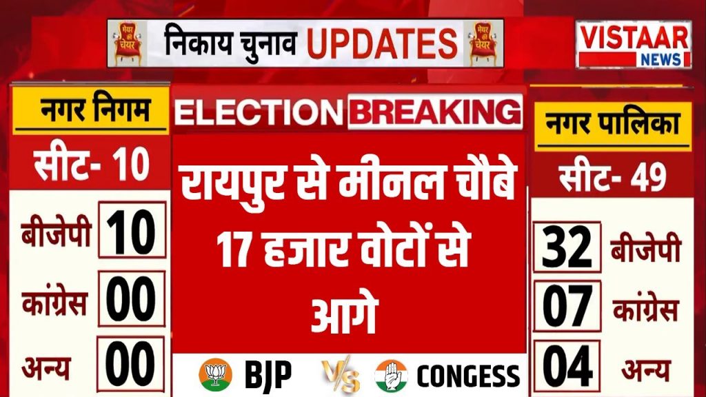 Nikay Chunav Result 2025: Raipur से Meenal Choubey 17 हजार वोटों से आगे Vistaar News Desk 10 months ago